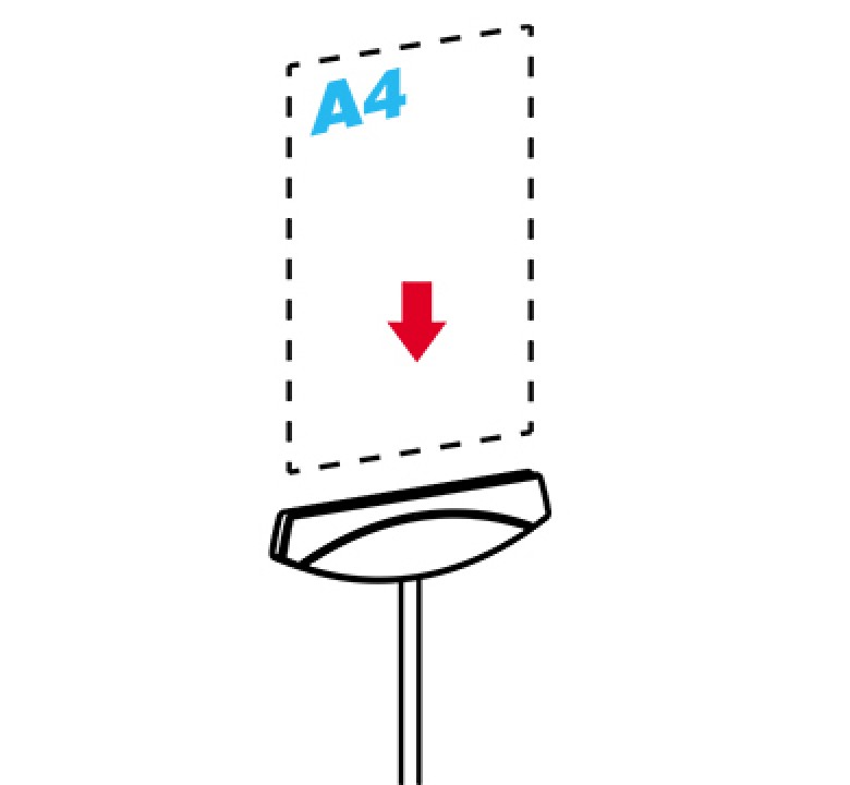 Держатель акриловых карманов или плакатов из картона. Толщина вставки - 3 мм. Ширина вставки - 210 мм. Возможно нанесение логотипа. Крепится на трубку Ø 9