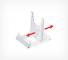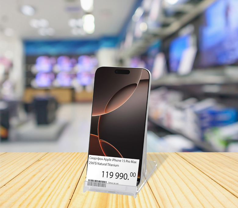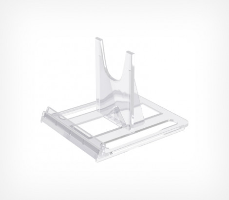 Универсальная сборная подставка под товар регулируется под разную толщину товара, что делает ее оптимальной для планшетов, смартфонов, печатных или электронных книг. Передний край подставки оснащен встроенным ценникодержателем.