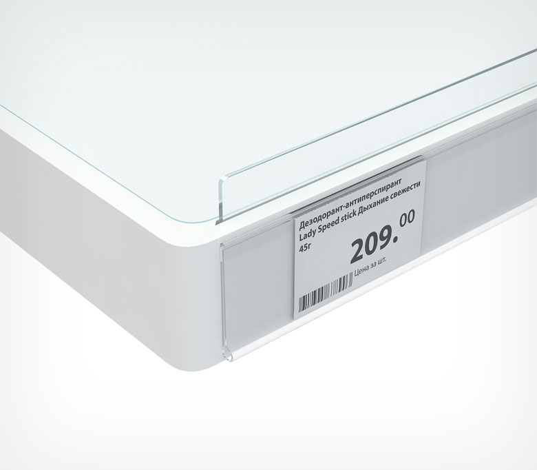 Универсальный ценникодержатель DBR высотой 30 мм с самоклеящейся основой – идеальное решение для представления цены в магазинах с оборудованием, не имеющем широких поверхностей для монтажа стандартных ценникодержателей, или промо-дисплеями. Используется в магазинах косметики и парфюмерии, винных и книжных магазинах, аптеках. Надежно фиксируется на двухсторонний скотч, нанесенный на ценникодержатель.
