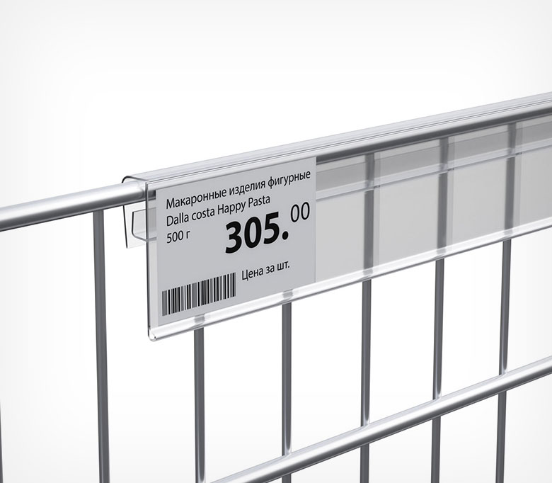 Ценникодержатель на полки из металлических прутьев