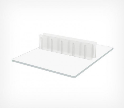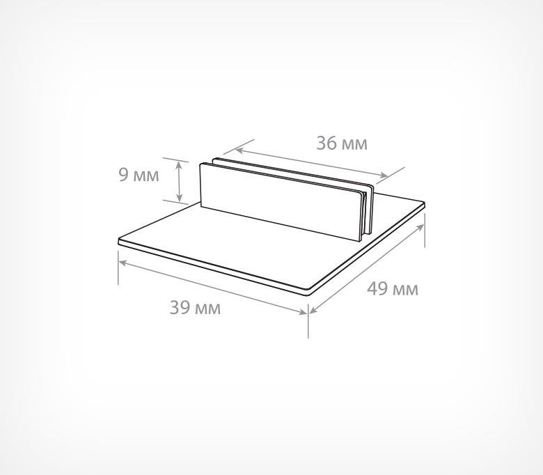 Держатель ценника с центральным расположением клипсы размещает вставки под прямым углом к поверхности толщиной не более 0,5 мм. Возможность разместить двухсторонние ценники.