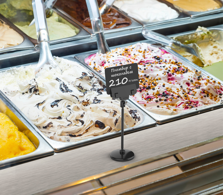 Круглая магнитная подставка предназначена для размещения ценников и табличек на витринах, стеллажах, торговых прилавках и выставочных стендах. Подставка изготовлена из высокопрочного пластика и оснащена надёжным магнитным основанием, обеспечивающим устойчивую фиксацию на различных поверхностях, включая металл и стекло. Гибкий механизм крепления позволяет свободно вращать держатель и регулировать угол наклона, обеспечивая оптимальный обзор информации. Элегантный чёрный цвет основания делает её стильным и незаметным элементом оформления.