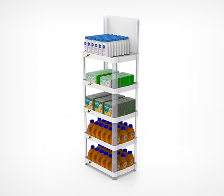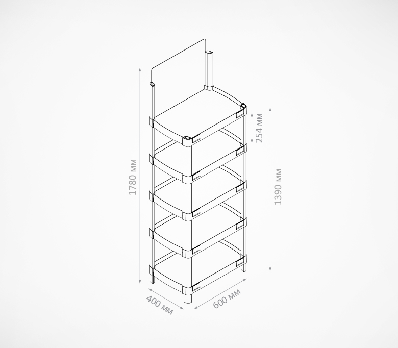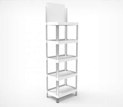 Пластиковая стойка из лёгкого пластика. Используется для выкладки и выделения различного товара. В комплекте идёт 5 полок.