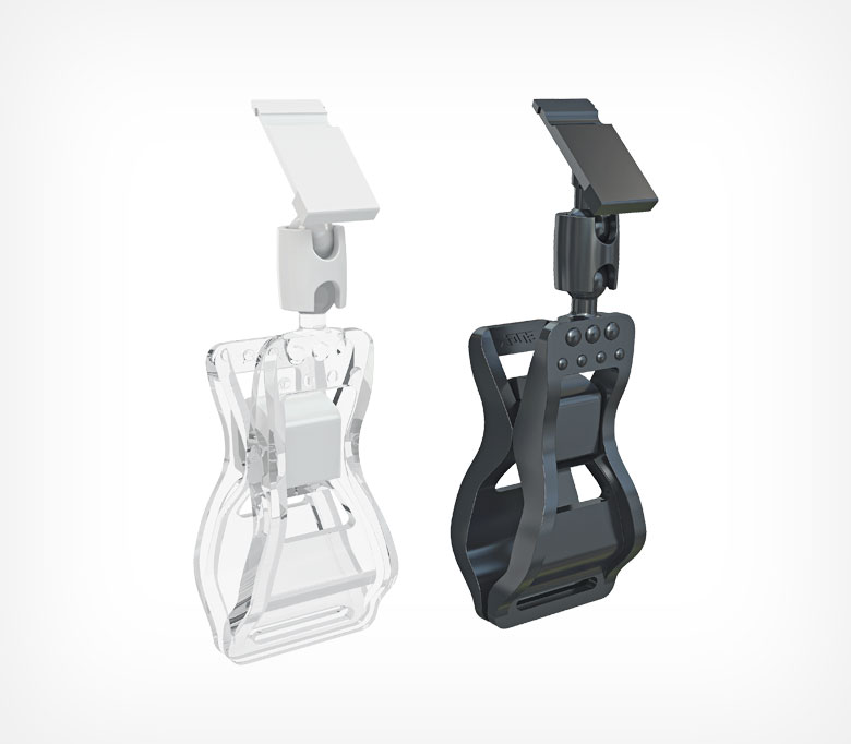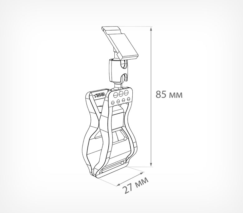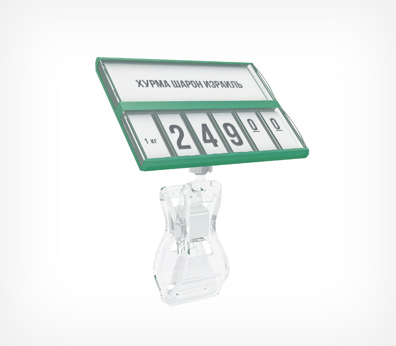 Прищепка на край ёмкости толщиной до 25 мм. Имеет шарнирное соединение, благодаря которому возможно выставить кассету цен под любым углом.