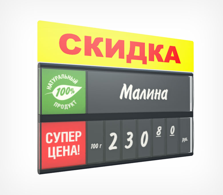 Топпер для кассет цен форматов А8, А7 и А7L. Надпись "Скидка" акцентирует внимание покупателя на скидочных товарах.