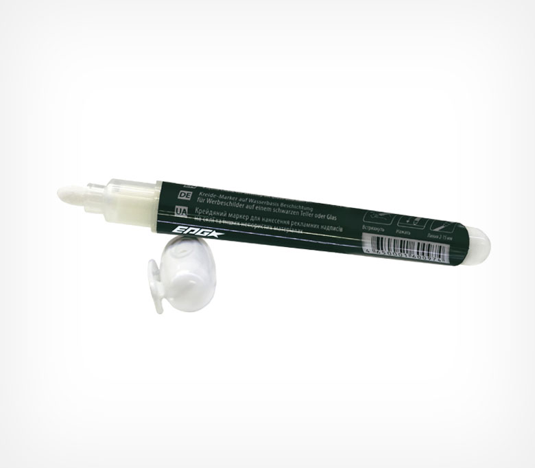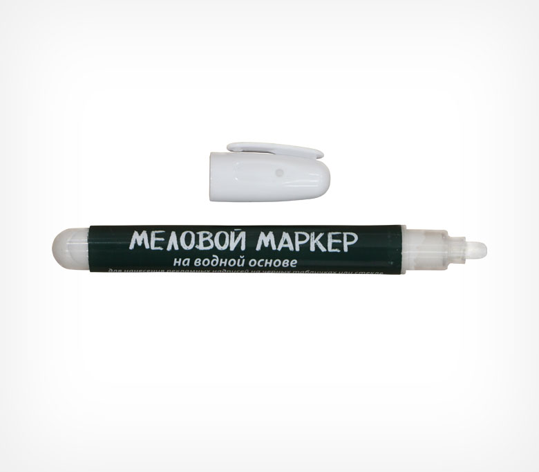 Маркер меловой белого цвета для использования с меловыми грифельными табличками. Легко удаляется влажной тряпкой или салфеткой.