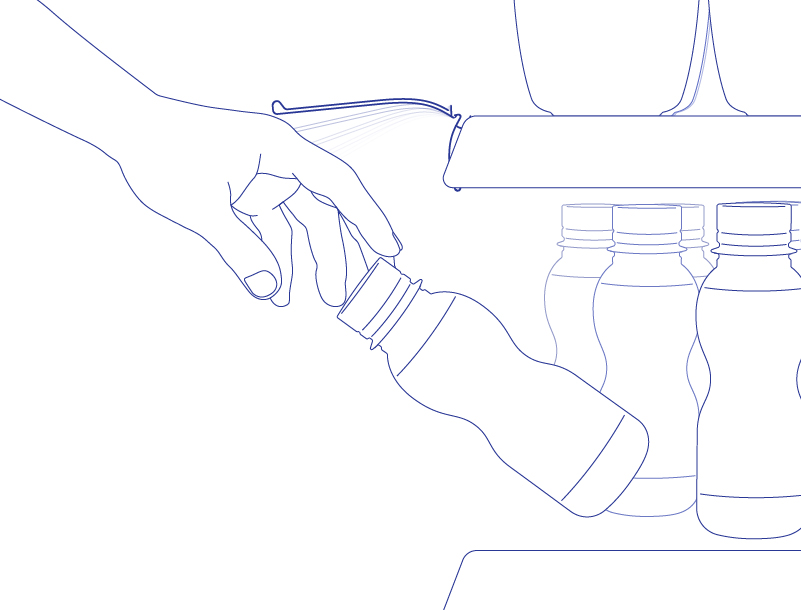 Гибкое крепление обеспечивает откидывание ценникодержателя вверх, что позволяет легко и быстро доставать товары и делает возможным разместить больше полок, сократив межполочное расстояние.