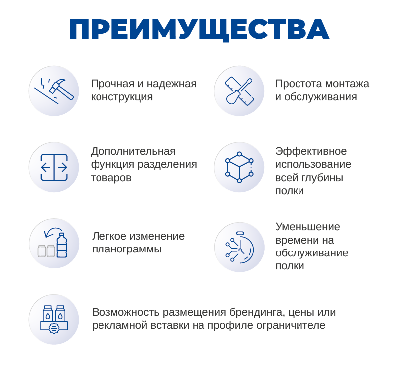 Профили для крепления разделителей и толкателей на полку