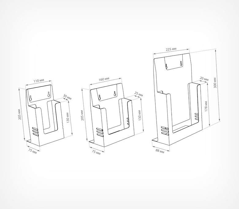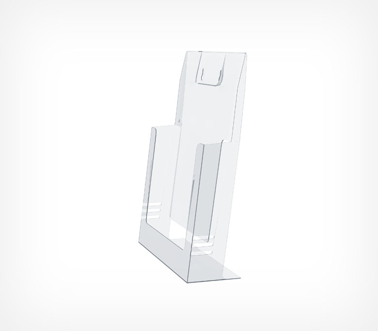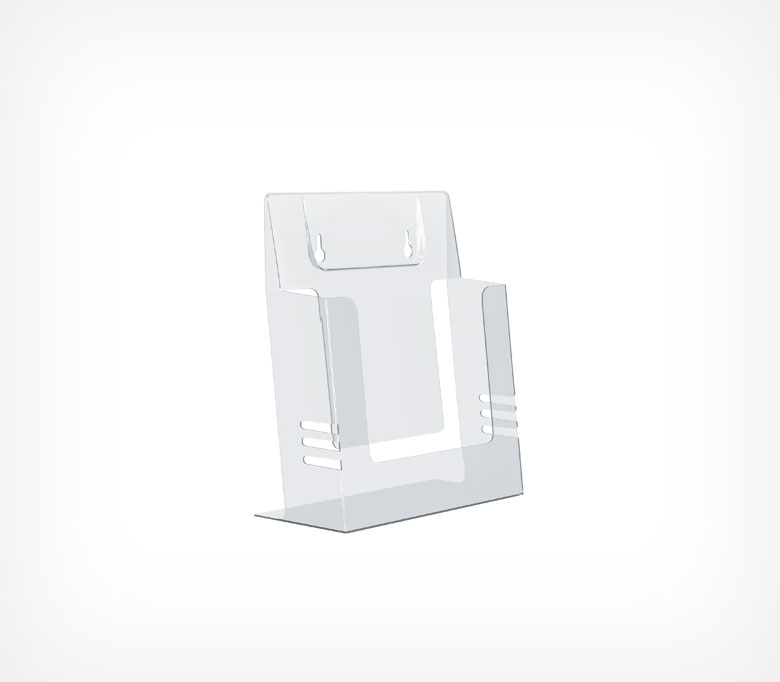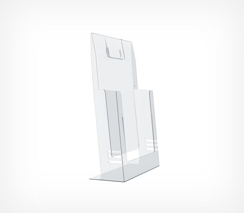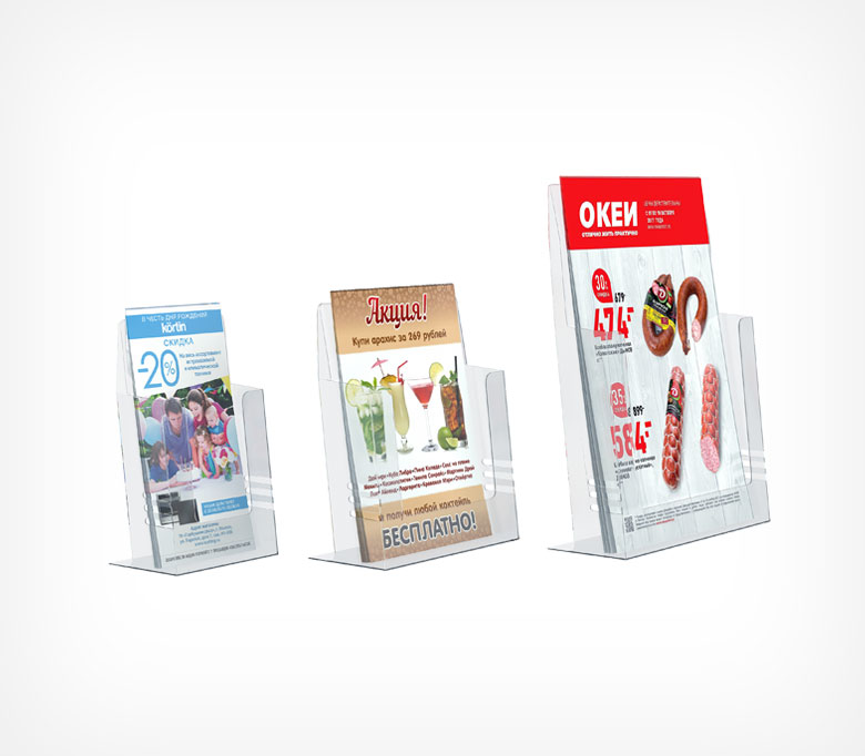 Прозрачная подставка-карман для размещения печатных брошюр, проспектов и буклетов. Устанавливается на ровную поверхность, позволяет украсить холлы и приемные, ресепшн, прикассовые зоны магазинов. Под заказ брендируется логотипом компании.