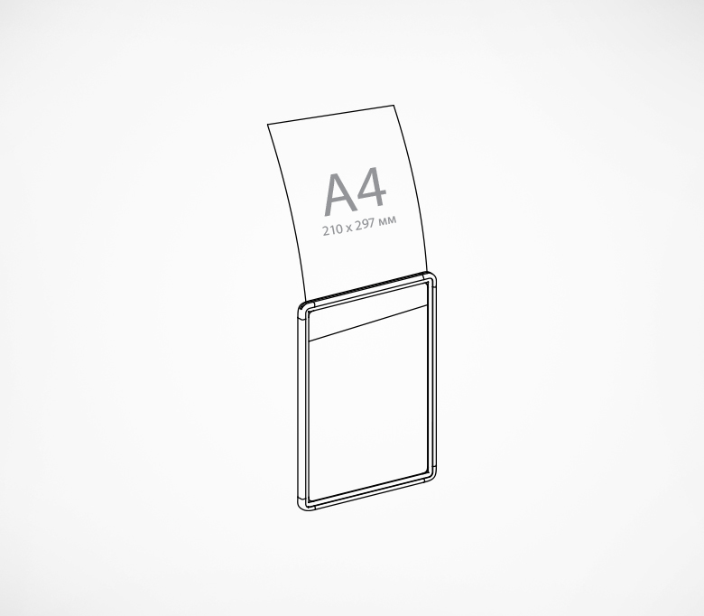 Рамка из поликарбоната с закругленными углами для вставки информации формата А4. Наиболее востребованный формат пластиковых рамок, которые доступны во всех цветах. Может использоваться с бумажными, картонными, ламинированными плакатами, которые дополнительно могут быть помещены в защитный карман-вкладыш из ПВХ. Большой ассортимент крепежных изделий позволяет размещать информацию в пластиковой рамке на стене, любой ровной поверхности, подвешивать к потолку, на доски информации и т.д.
