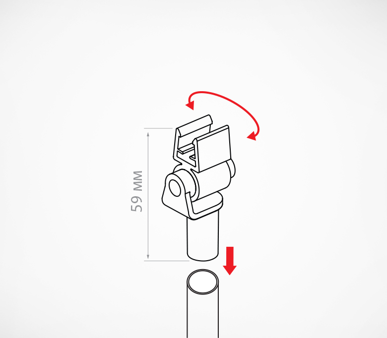 Специальная насадка с креплением для пластиковых рамок А6-А4. Может устанавливатся на алюминиевые трубки, держатели-прищепки типа Clamp диаметром 9 мм. Поворотный механизм крепления дает возможность установить информацию под наклоном, а не только перпендикулярно поверхности.