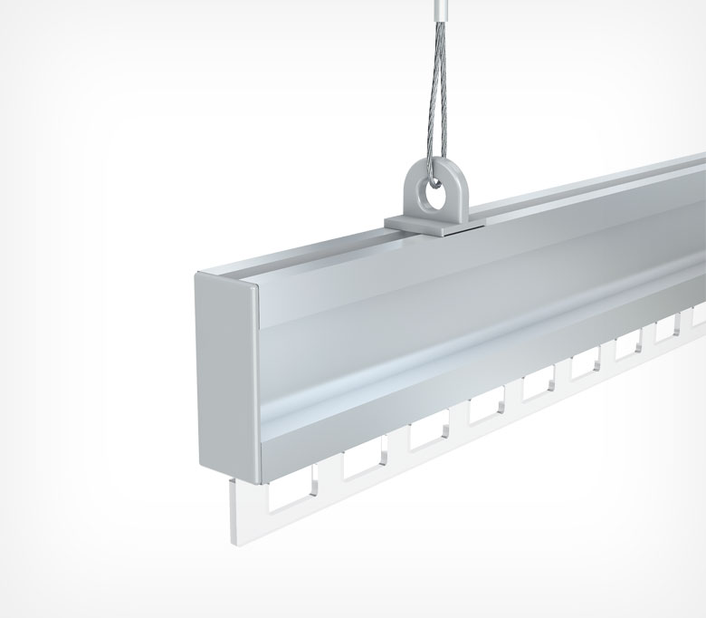 Алюминиевый профиль с лаконичным дизайном HIGHTRACK создает многофункциональную подвесную систему. Улучшенная конструкция профиля позволяет размещать крупные плакаты и баннеры нестандартного формата.