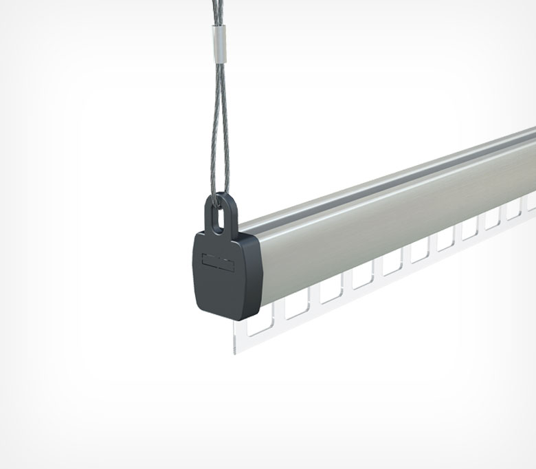 Заглушка в подвесной профиль ECOTRACK. Заглушка предотвращает выпадение перфорированной вставки. Используется так же для подвешивания.