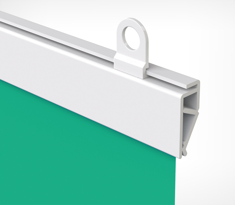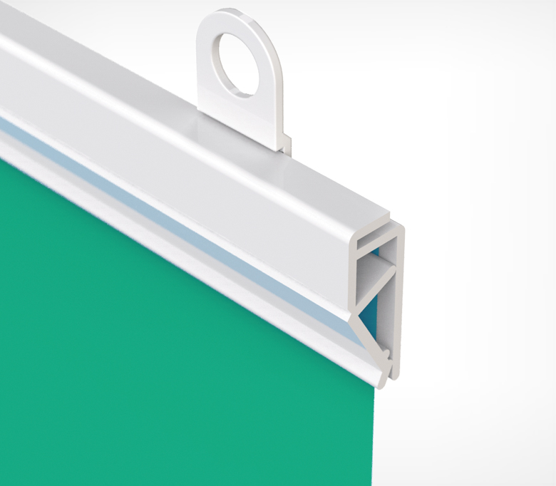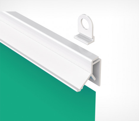 Для размещения бумажных плакатов или легкой баннерной ткани толщиной до 0,7 мм в стеклянных витринах, торговых залах магазинов часто используют защелкивающийся пластиковый профиль Cliker. Клик-профиль позволяет быстро и легко вставить баннер либо плакат. На один плакат целесообразно устанавливать два профиля сверху и снизу. Подвешивается профиль с помощью специальных петель, которые заказываются отдельно. Стандартные размеры: 600 мм, 1000 мм, 1200 мм.