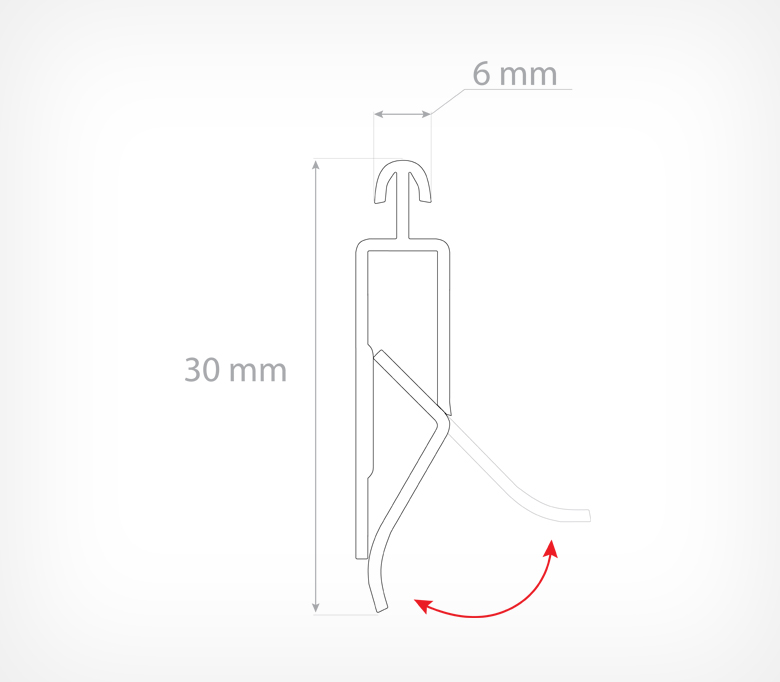 Широкий защелкивающийся пластиковый профиль Gripper позволяет быстро и легко зажать баннер либо плакат до 3 мм в толщину. Подвешивается профиль с помощью специальных петель, которые заказываются отдельно. Стандартные размеры: 600 мм, 1200 мм. Возможно самостоятельно нанести на заднюю поверхность профиля клейкую ленту и закрепить профиль на ровной поверхности.
