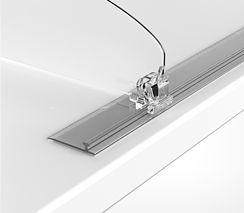 Т-образный прозрачный профиль шириной 30 мм служит для фиксации на полке систем разделителей и толкателей. За счет более широкой поверхности и усиленного пластика используется в основном с разделителями высотой 120 мм и 200 мм, обеспечивает более надежную фиксацию на полке. Монтируется за счет клейкой либо магнитной ленты на металлические, деревянные полки, столы и промо-стойки.