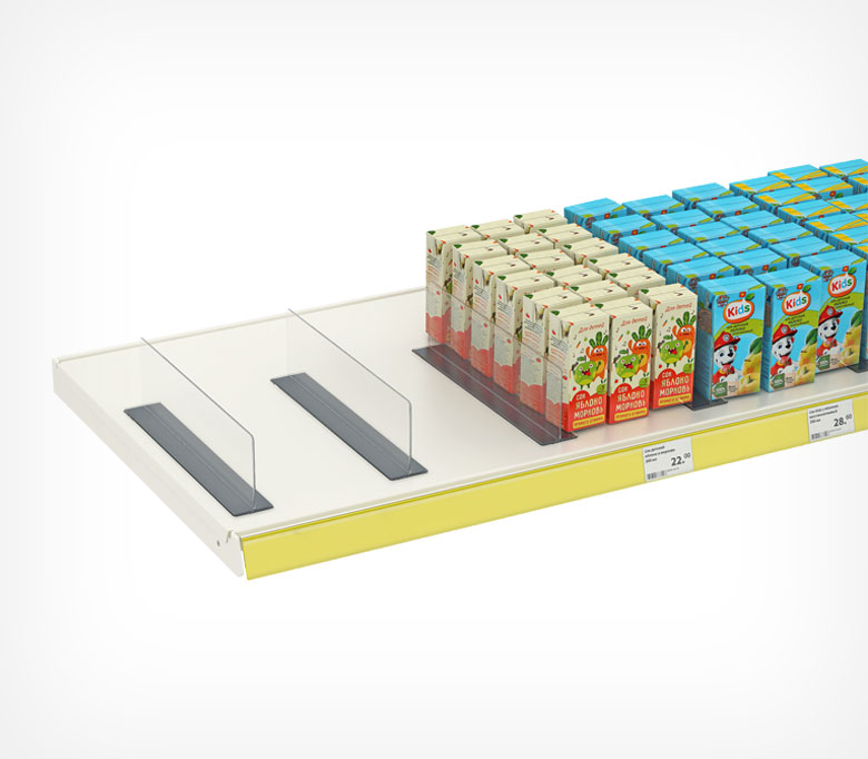Универсальный Т-образный разделитель товара высотой 80 мм из ударопрочного пластика с магнитным скотчем. Используется на металлических полках. Не требует дополнительных крепежных элементов. Удобен в использовании, быстро переставляется в нужное место.