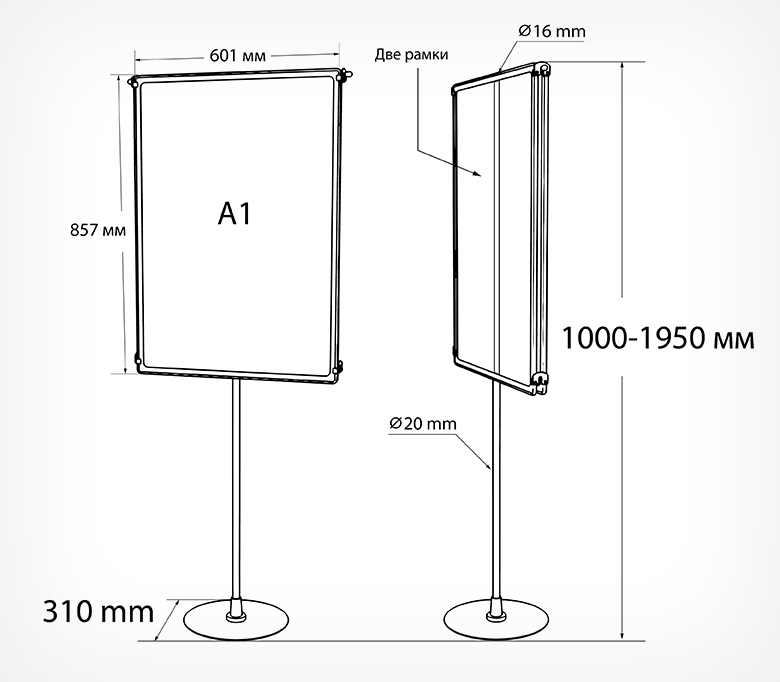 Стойка телескопическая рекламная с двумя рамками формата A1