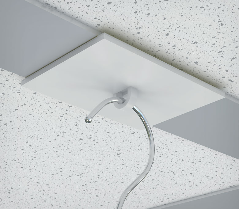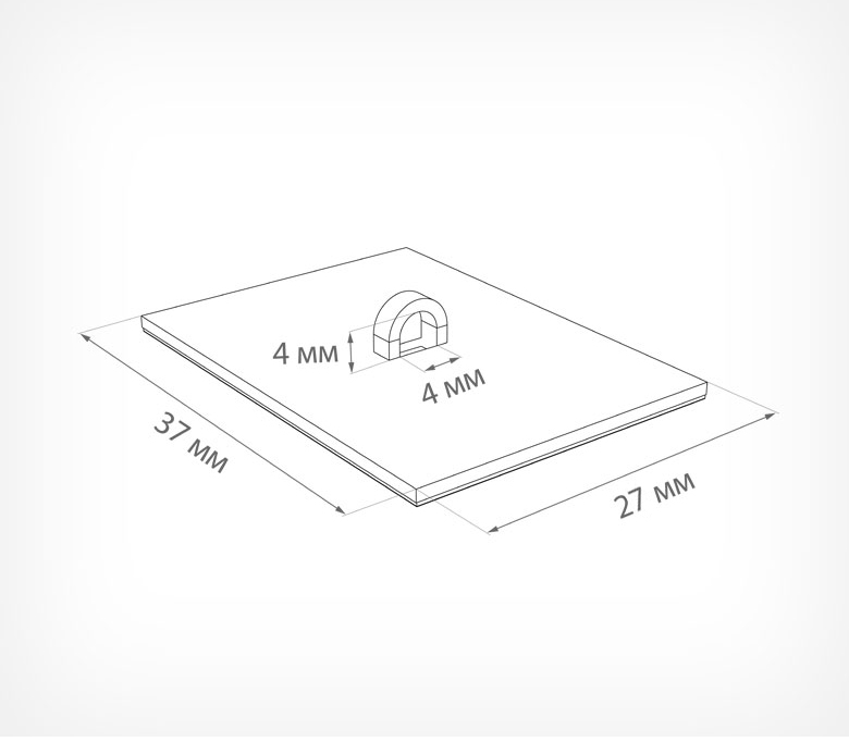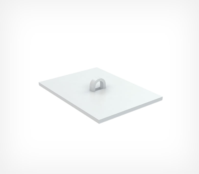 Большой крепеж из пластика с небольшим ушком-петлей для подвешивания рекламных конструкций. Прикрепляется к потолку либо снизу навесной полки на вспененную клеевую основу. Рекомендуется использовать для подвешивания баннеров, пластиковых профилей и алюминиевых профилей.