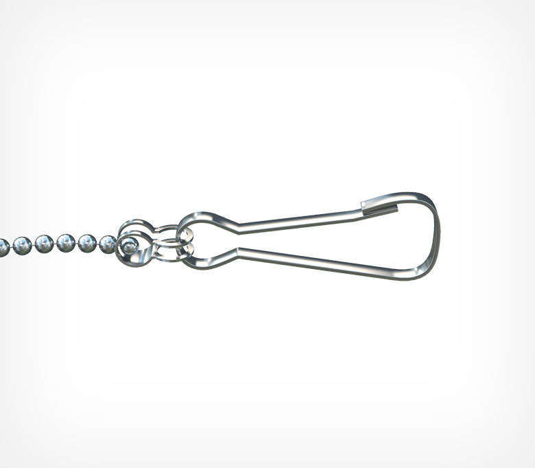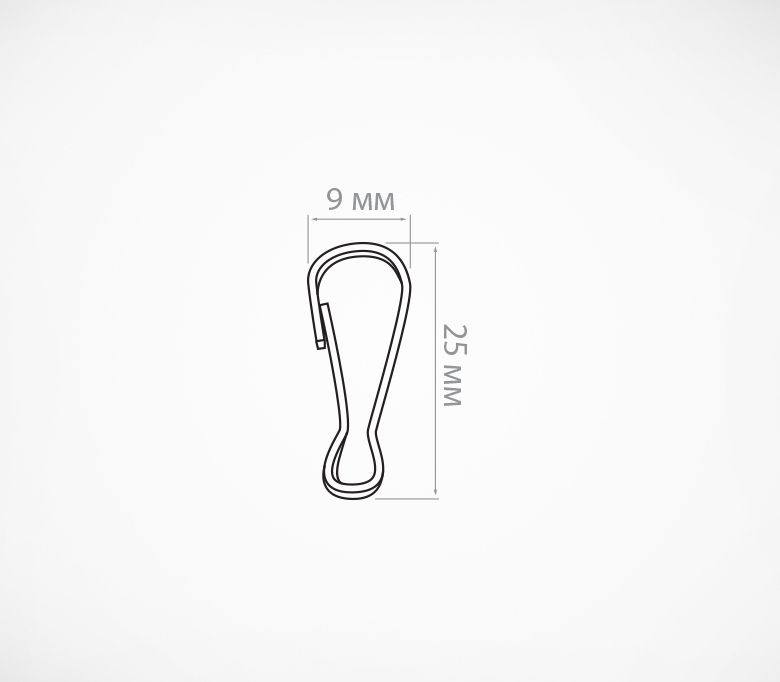 Уменьшеная версия металлического карабина, длина изделия 25 мм. Изготовлен из проволоки толщиной 2,2 мм. С помощью него можно «зацепить» необходимую конструкцию либо ее компонент при подвешивании. Разъемное соединение позволяет в любой момент открыть карабин и отцепить его.