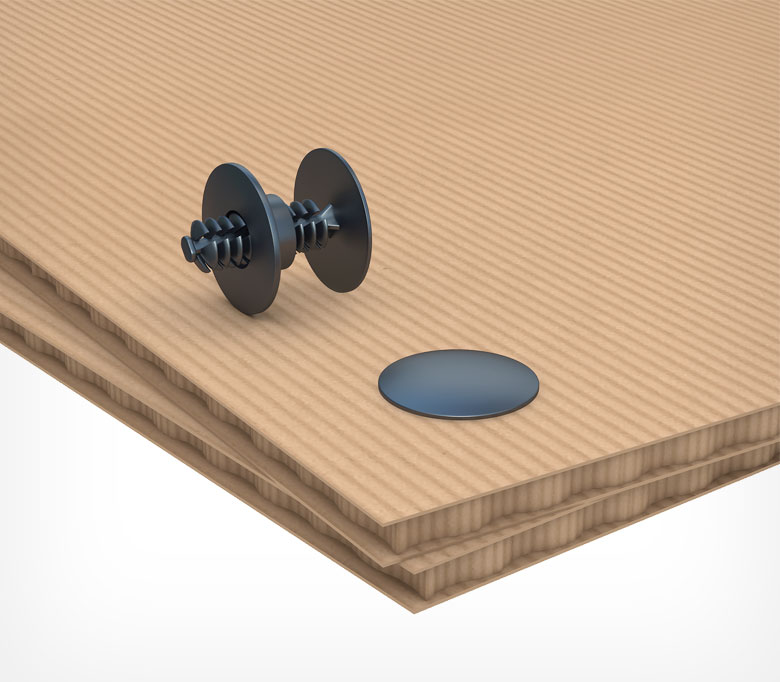Универсальная заклепка с мягкими ребрами обеспечивает надежную фиксацию элементов рекламной конструкции и POS-материалов. Можно использовать с гофрированным или переплетным картоном, тонким металлом или пластиком. Возможна комбинация материалов.