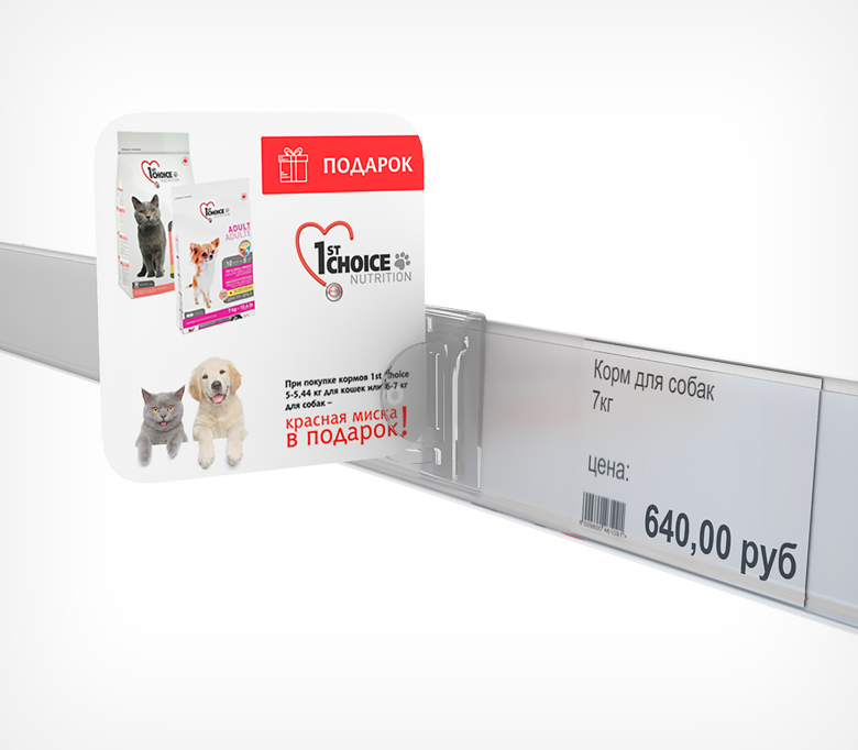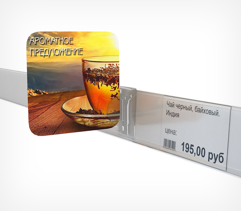 Клипса служит для закрепления рекламного стоппера на полочный ценникодержатель высотой 39 мм перпендикулярно к полке. Используется для создания рекламных вывесок, которые размещаются рядом с товаром и содержат информацию о товаре или акции. В качестве рекламного стоппера может быть использован ламинированный картон или тонкий пластик толщиной не более 0,8 мм. Надежная фиксация благодаря конструкции держателя.